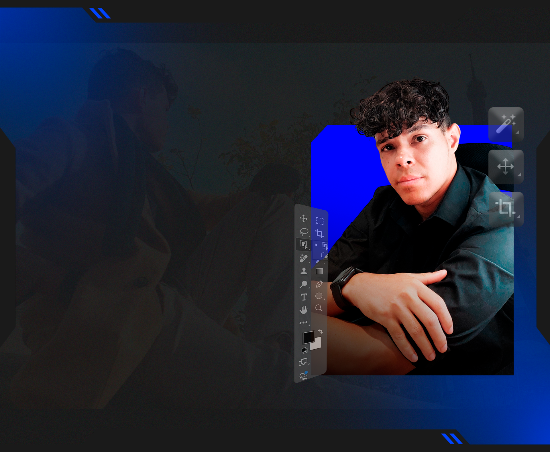 Oferecemos serviços que transformam seu negócio com eficiência e estilo nas cores azul e preto.